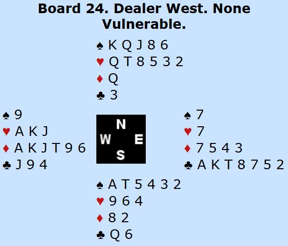 Med ethvert annet utspill har Syd valget mellom å godspille bordets kløver eller sin egen spar, og begge deler går fint. Nå hadde imidlertid Antonio Mortarotti et stikk for lite og endte opp med å gå 2 bet.