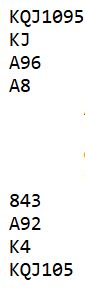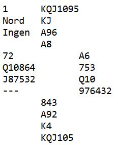 Vel, 6 spar ble kontrakten ved mange bord, men det ble feil siden hele spillet så slik ut: